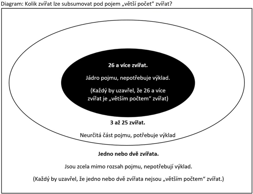 Tedy neurčitou částí pojmu „větší počet“ zvířat, kterou budu podrobovat dalšímu výkladu je 3 až 25 zvířat. (Když výše bylo dovozeno, že jedno nebo dvě zvířata zcela jistě nejsou „větším počtem“ a 26 a více zvířat zcela jistě je „větším počtem“.)